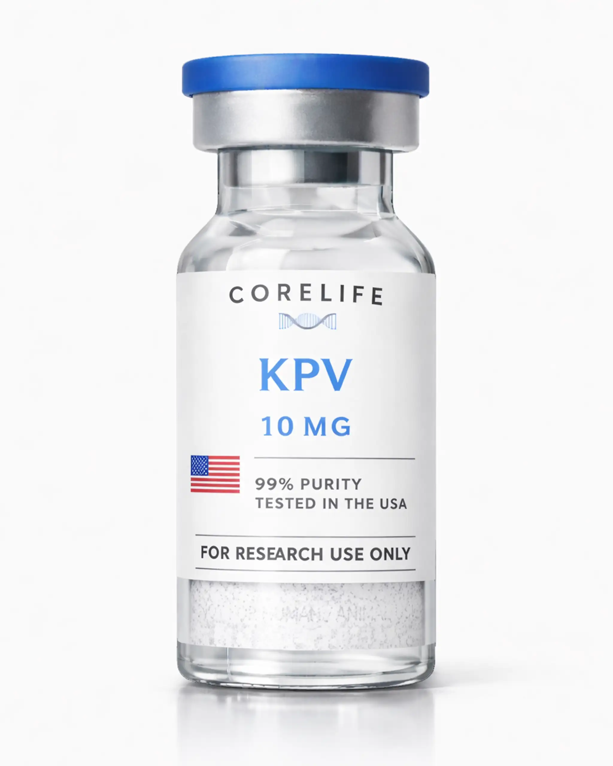 KPV (Ac-KPV-NH2) is a short synthetic peptide fragment derived from alpha-MSH, composed of lysine, proline, and valine. Research examines its anti-inflammatory properties across multiple biological systems, including the gastrointestinal tract and vascular pathways. KPV remains under scientific study and is provided strictly for laboratory research purposes only.